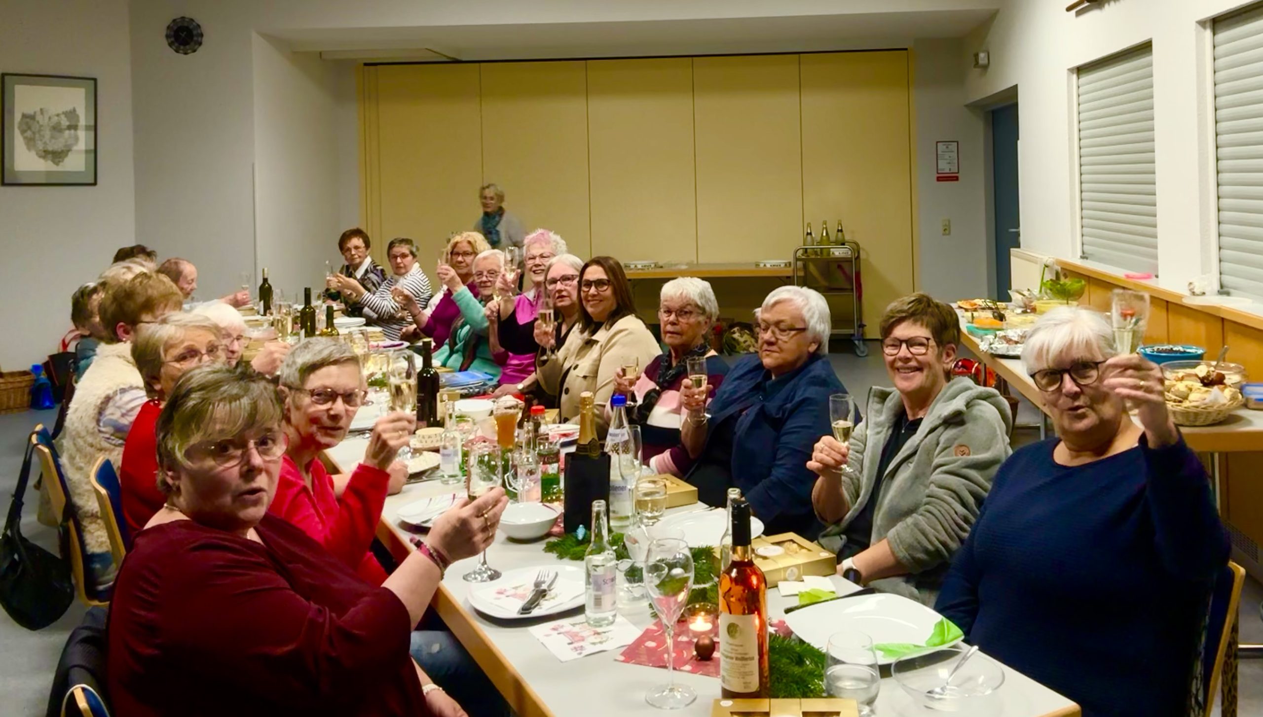 Diese Woche trafen sich die 22 Turner Frauen, nicht im Gemeinschaftshaus, um ihren Körper zu stählen, sondern um die Gesellschaft, ein Gläschen Sekt und ein wunderschönes Buffet zu genießen. Jede von ihnen hatte ihren Beitrag, zu den Köstlichkeiten geleistet. Nette Gespräche und die obligatorische, Runde Bingo sorgten dafür, dass es nicht langweilig wurde. (Rita Eckert, Fotos Rita Eckert)